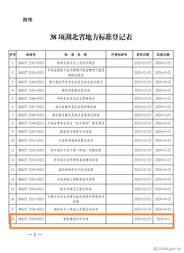綠色通道立項,多組分布式調(diào)研,大量項目數(shù)據(jù)采集,龍頭企業(yè)集中攻關(guān),12月23日,湖北省市場監(jiān)督管理局公告發(fā)布我省《智能建造評價標(biāo)準(zhǔn)》(DB42/T2159-2023)。