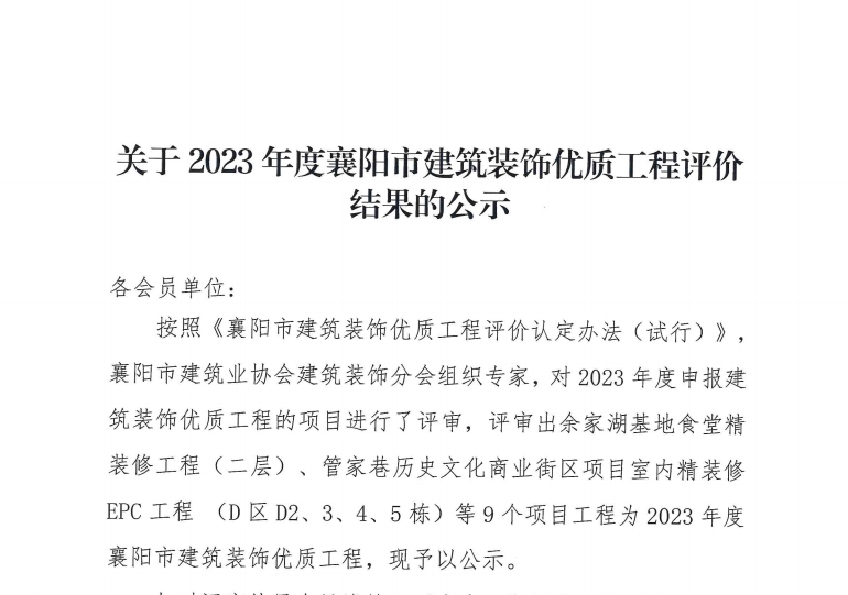 關于表彰2019年度襄陽市建設工程“隆中杯”獎(市結構優質工程)的通報