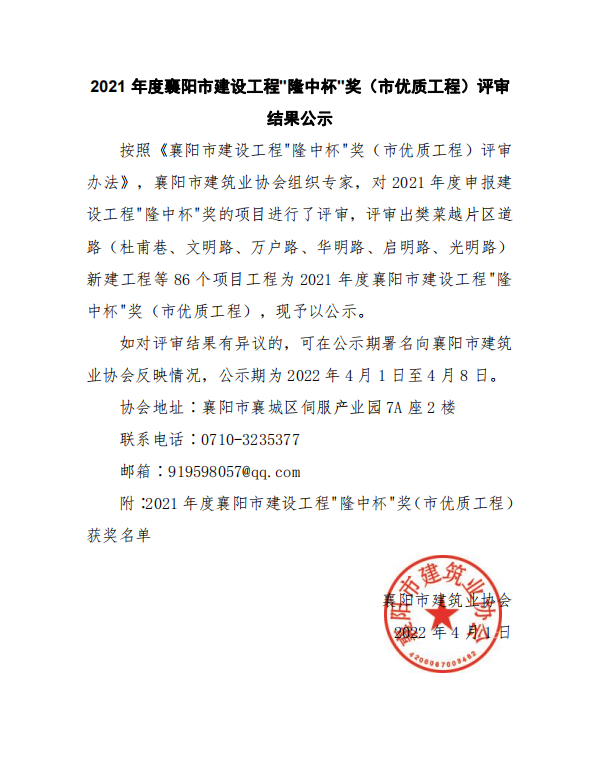 2021年度襄陽市建設工程“隆中杯”獎(市優質工程)評審結果公示.pdf