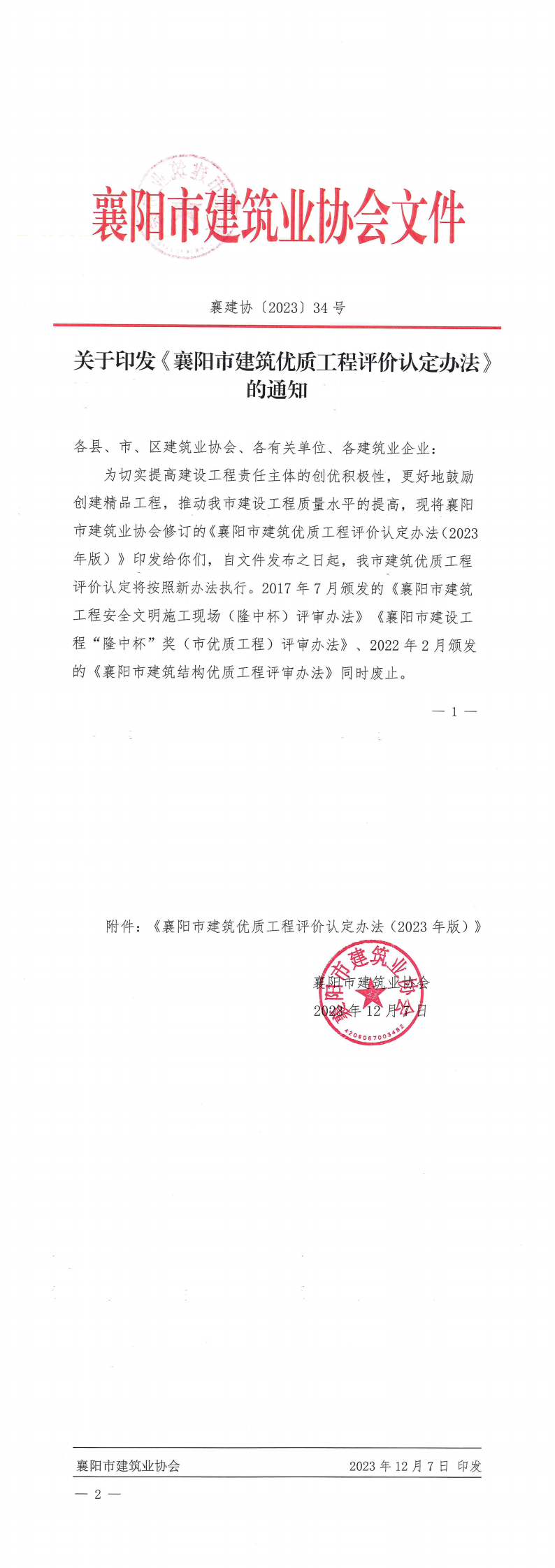 附件:《襄陽市建筑優質工程評價認定辦法(2023年版)》