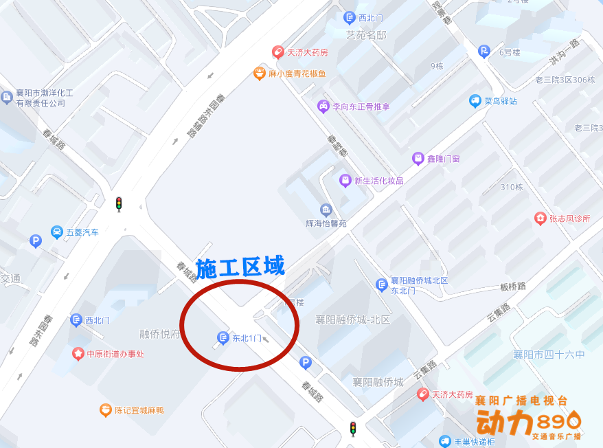 一、2023年12月11日至12月26日占用春城路與洪溝一路交叉口南進口全部機動車道打圍施工,施工路段由雙向4車道調(diào)整為雙向2車道。