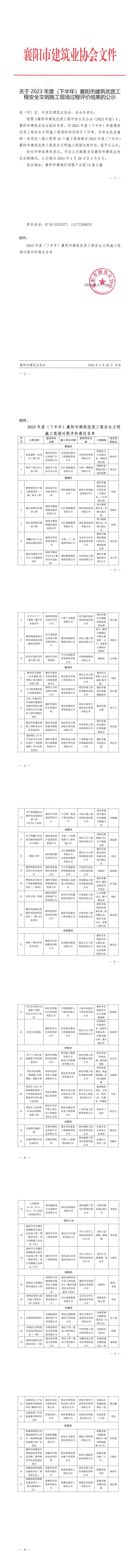關于2023年度(下半年)襄陽市建筑優質工程安全文明施工現場評審結果的公示